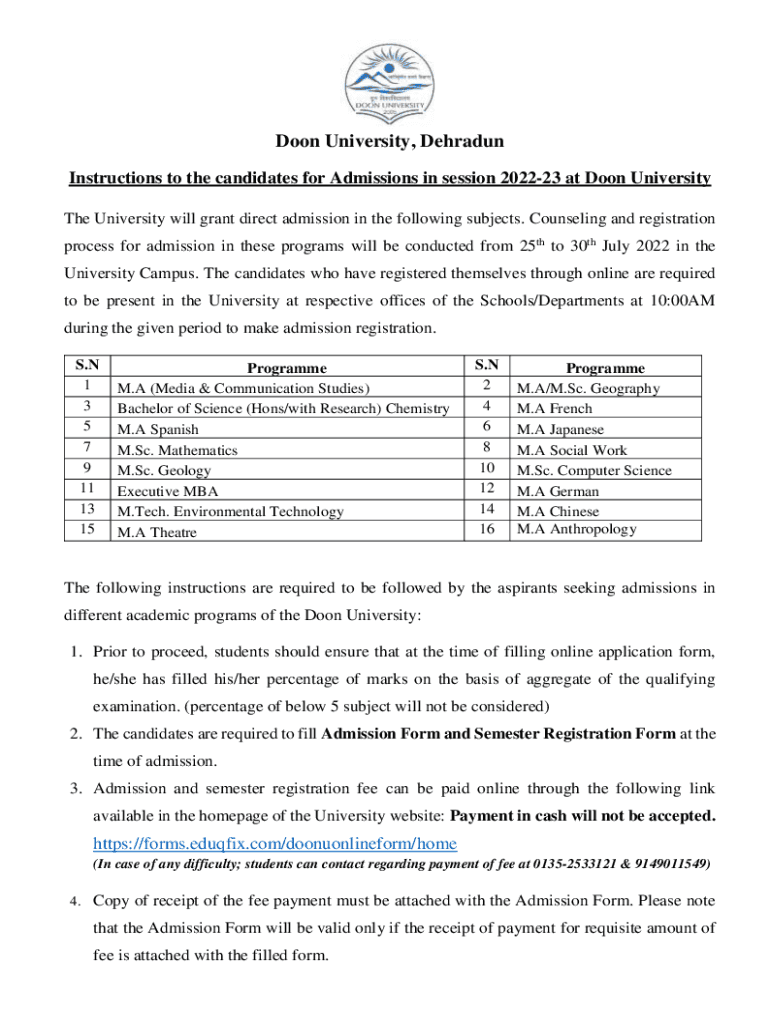 Get the free Doon University, Dehradun Office of the Registrar