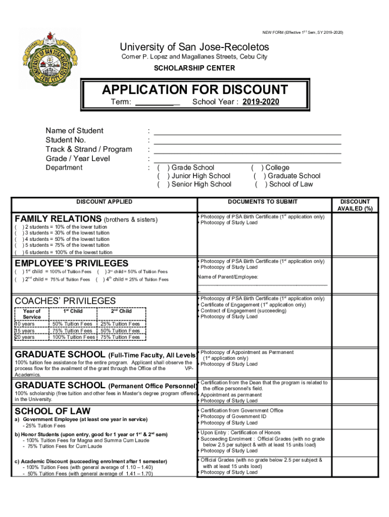 Get the free NEW FORM (Effective 1ST Sem, SY 2019-2020)