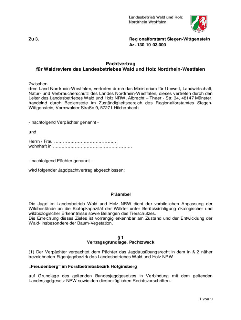 Holen Sie sich kostenlos Pachtvertrag fr Waldreviere des Landesbetriebes Wald und ...
