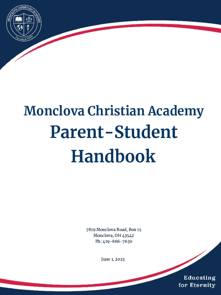 Monclova Christian AcademyParentStudent Handbook7819 Monclova Road, Box 15 Monclova, OH 43542 pH: 4198667630June 1, 202312Educating for EternityPARENTSTUDENT HANDBOOK Monclova Christian Academy is