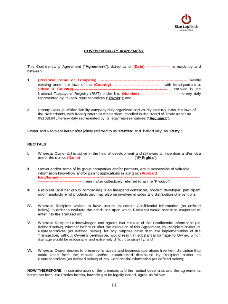 Confidentiality and Intellectual Property Agreement, Mark A ... template instructions
