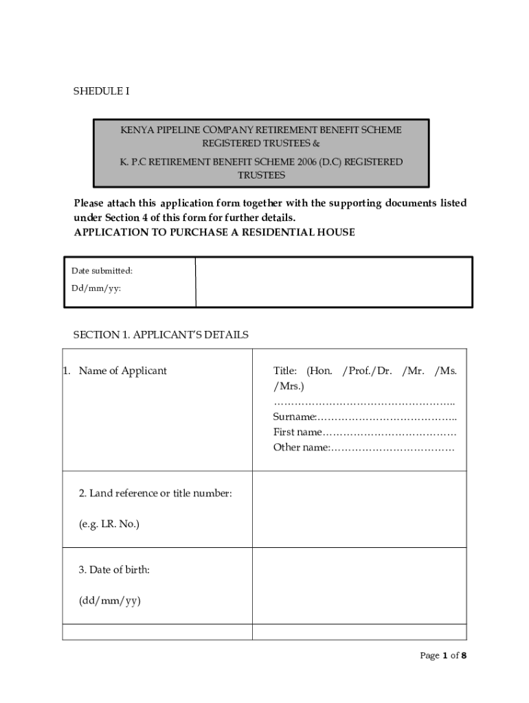 SCHEDULE I KENYA PIPELINE COMPANY RETIREMENT BENEFIT SCHEME REGISTERED TRUSTEES & K. P. C RETIREMENT BENEFIT SCHEME 2006 (D. C) REGISTERED TRUSTEESPlease attach this application form together with