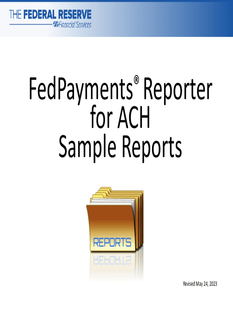 INTERNAL FR/OFFICIAL USE // ONLY Repayments Reporter for ACH Sample ReportsRevised May 24, 2023FedPayments Reporter for ACH Summary of Reports by Audience Report Name (page #)RDFIODFICustomer Transaction