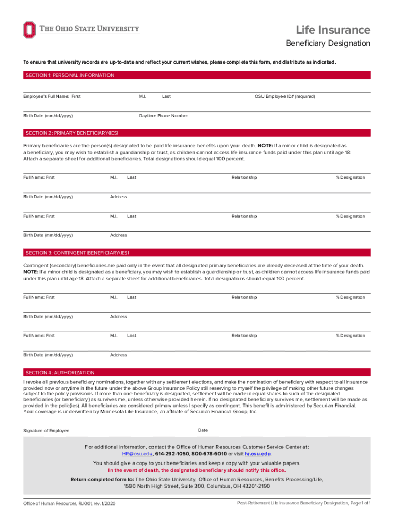 Screen reader users can use arrow key and header navigation to review the text content of this form. Use the tab key to enter into the form to begin filling it out. Life Insurance Beneficiary Designation