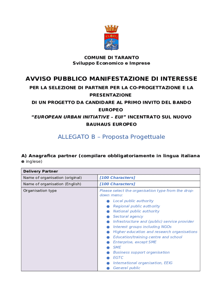 Instructions for the form Avviso di manifestazione d'interesse per l'individuazione e ...
