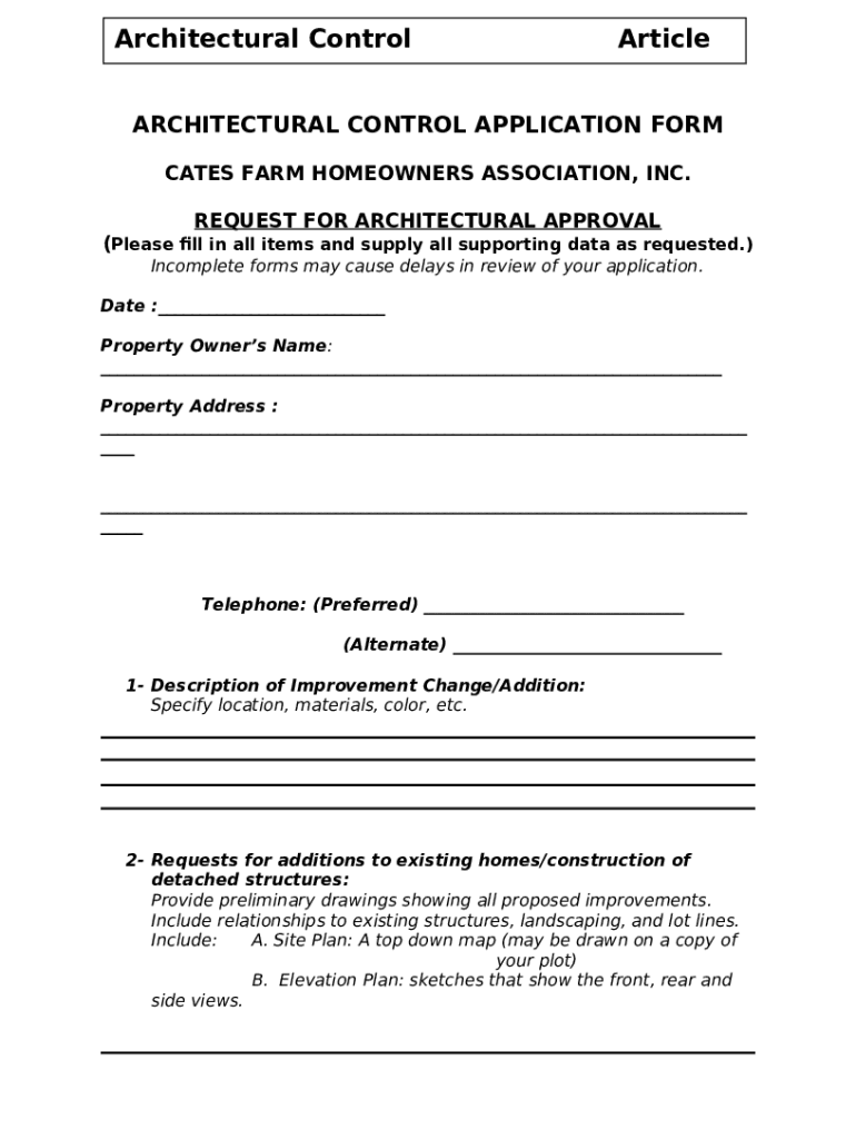 What is architectural control application cates farm homeowners ... Form?