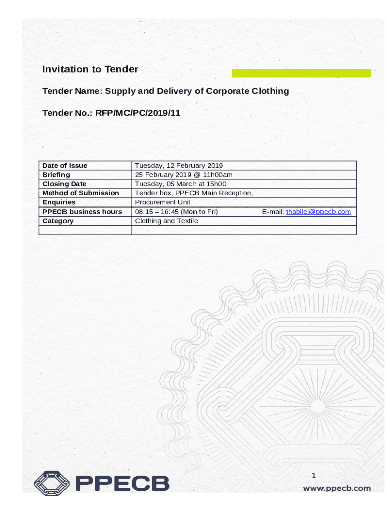 Instructions for the form Supply and Delivery of Corporate Clothing Tender No.