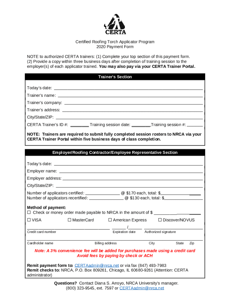 Template CERTANRCA Certified Roofing Torch Applicator Program instructions