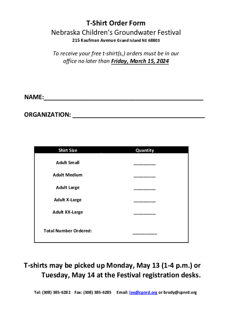 Shirt Order Form