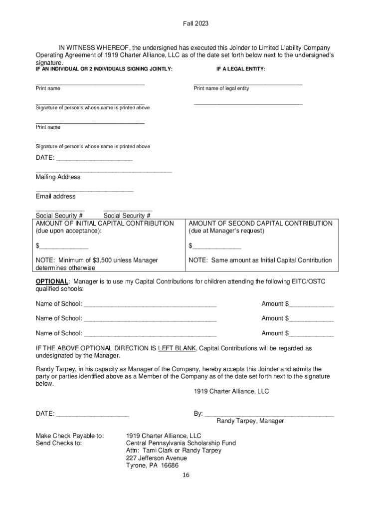 Fall 2023IN WITNESS WHEREOF, the undersigned has executed this Joiner to Limited Liability Company