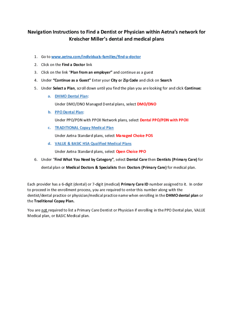 Navigation Instructions to Find a Dentist or Physician within Aetna network for Reacher Millers dental and medical plans 1. Go to www.aetna.com/individualsfamilies/findadoctor 2. Click on the Find