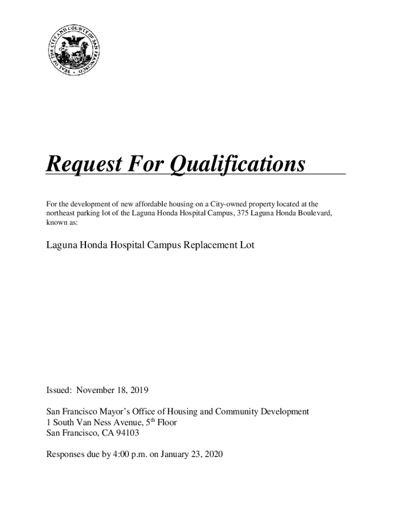 Request For Qualifications For the development of new affordable housing on a City owned property located at the northeast parking lot of the Laguna Honda Hospital Campus, 375 Laguna Honda Boulevard,