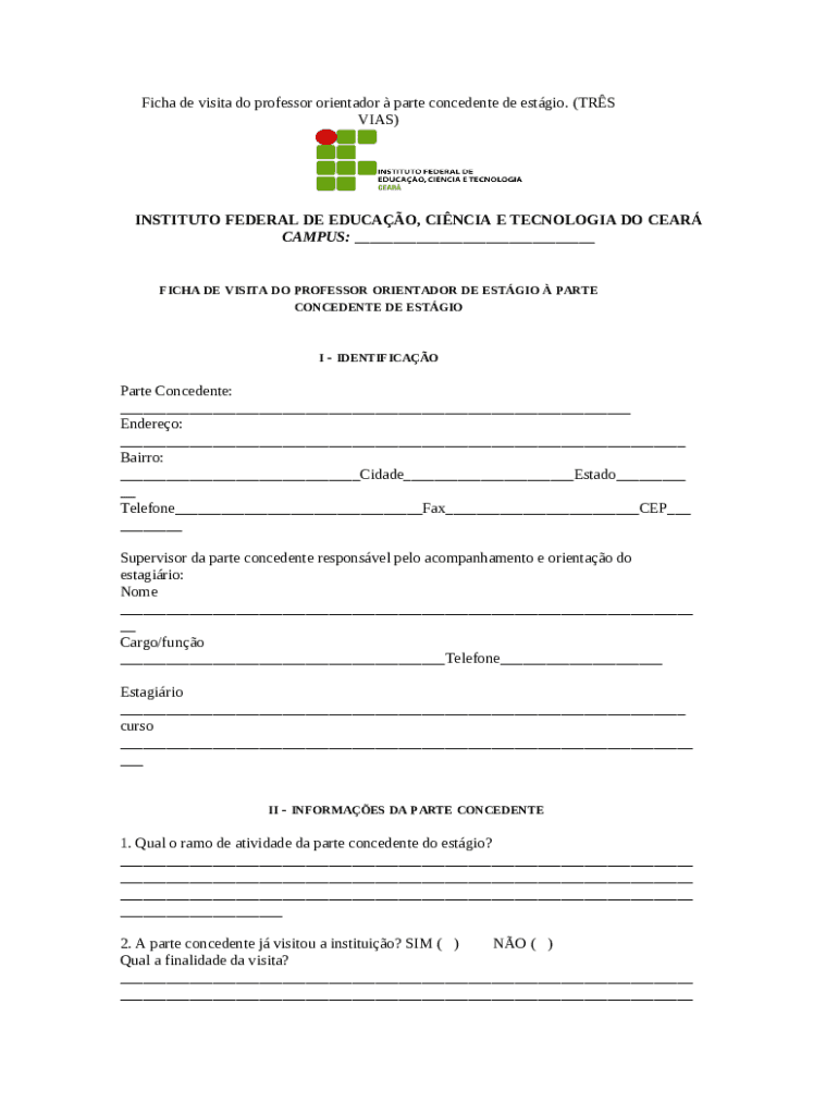 What is ficha-de-visita-do-professor-orientador-de-estagio. ... - ifce edu Form?