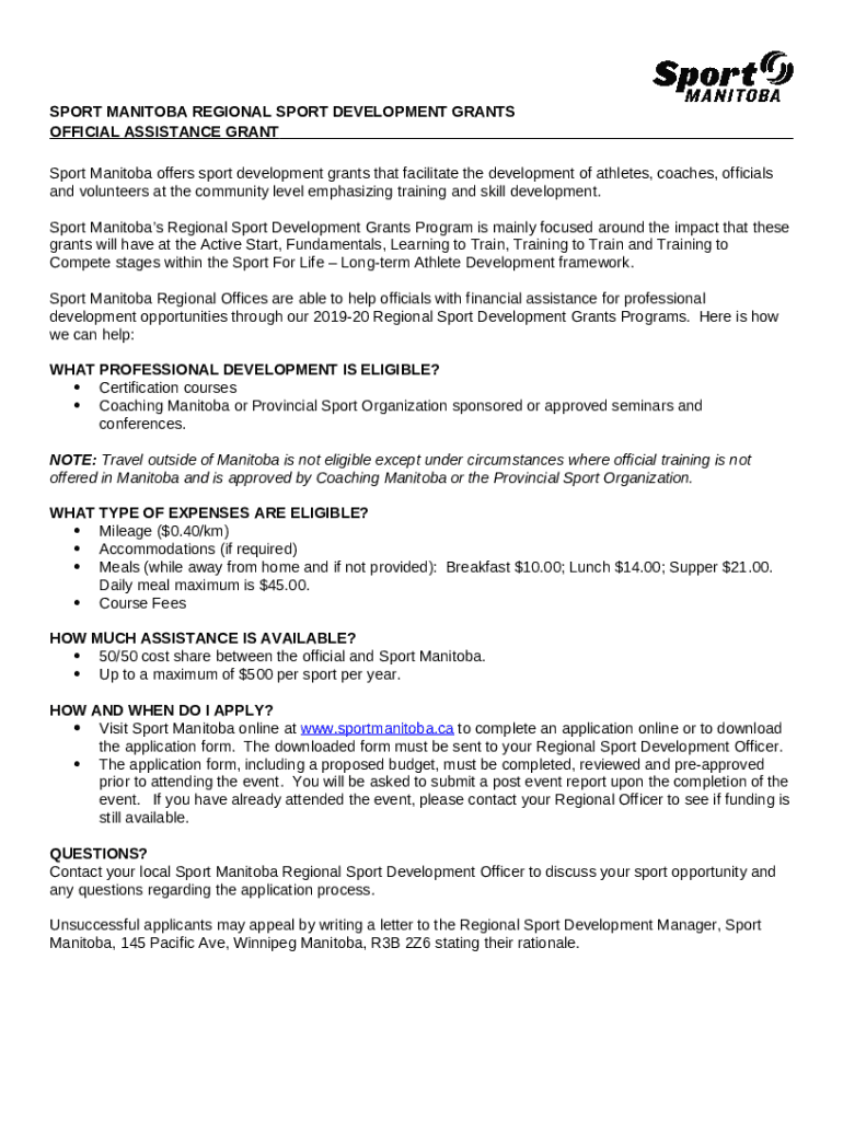 Instructions for the form Sport Manitoba Funding InationWinnipeg, MB