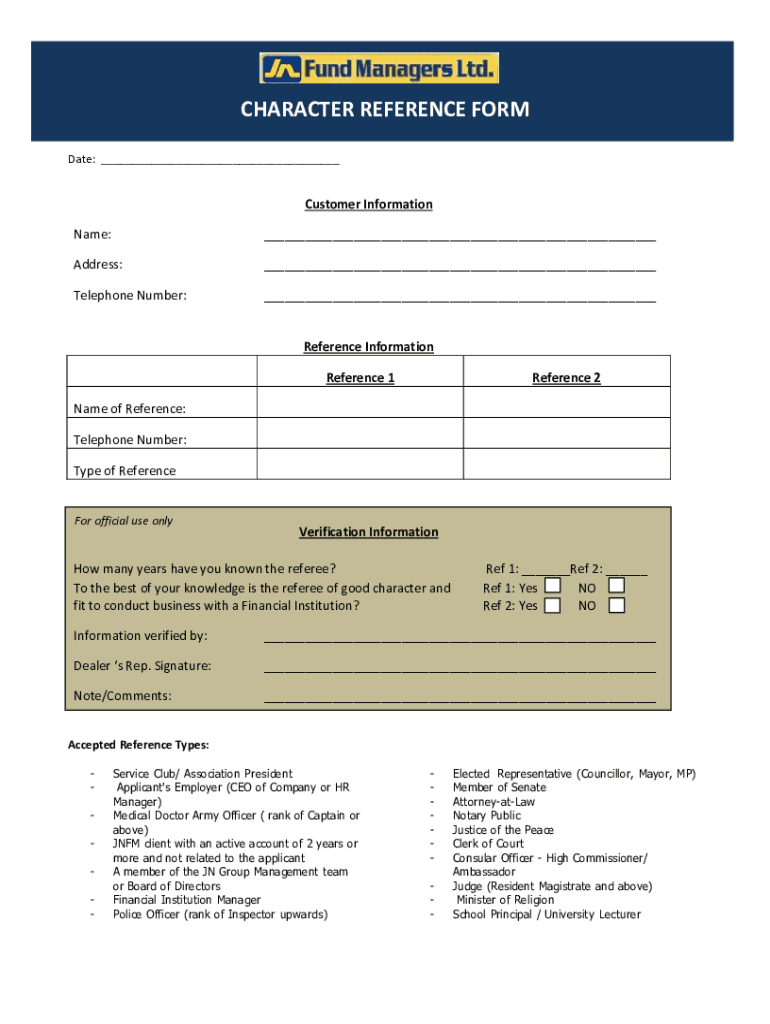 CHARACTER REFERENCE FORM