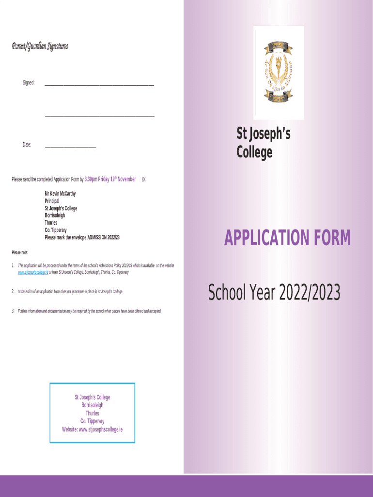 Template Application for Entry into - St Joseph's College Borrisoleigh instructions