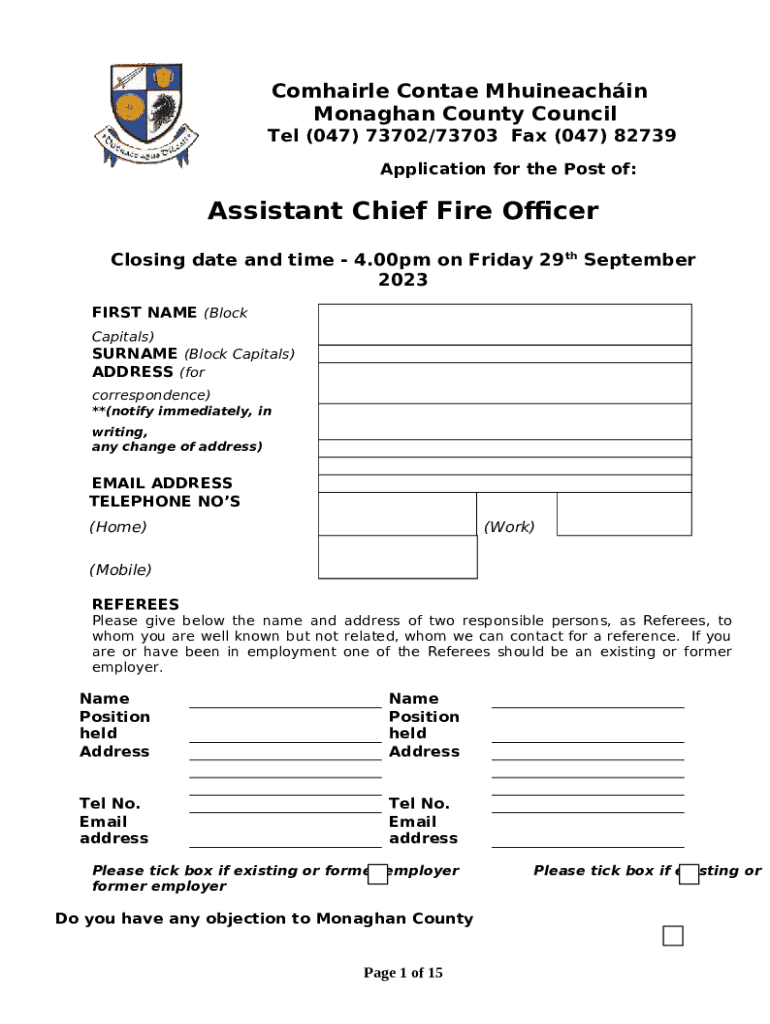 - Get the Assistant Chief Fire Officer -Application form in PDFfiller’s library.