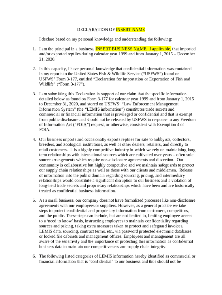 Frequently asked questions about the form DECLARATION OF INSERT NAME
