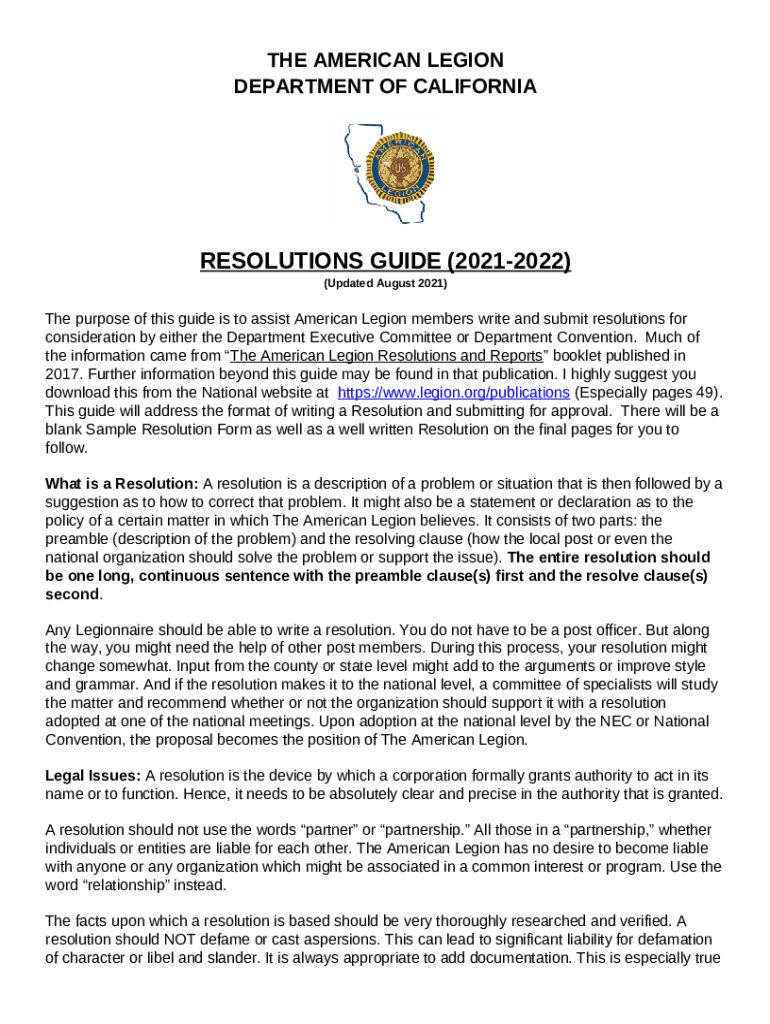The American Legion Resolutions and Reports word template: frequently asked questions