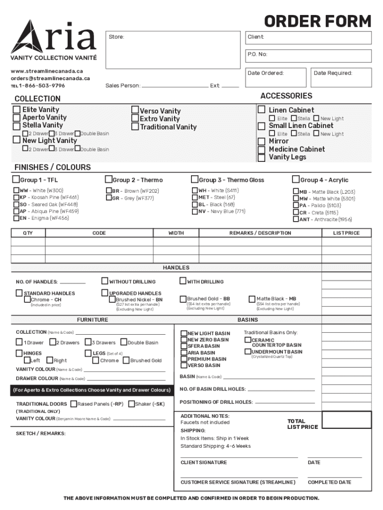 Edit your aria order form canada form online