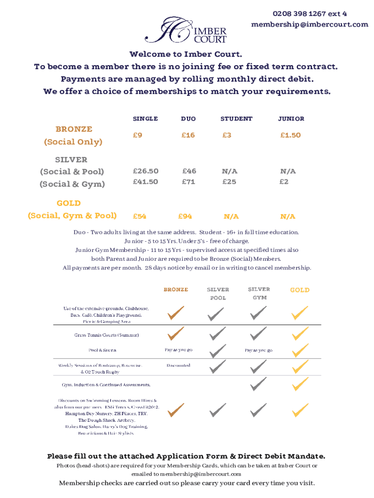 0208 398 1267 ext 4 membership@imbercourt.comWelcome to Imber Court. To become a member there is no joining fee or fixed term contract. Payments are managed by rolling monthly direct debit. We offer