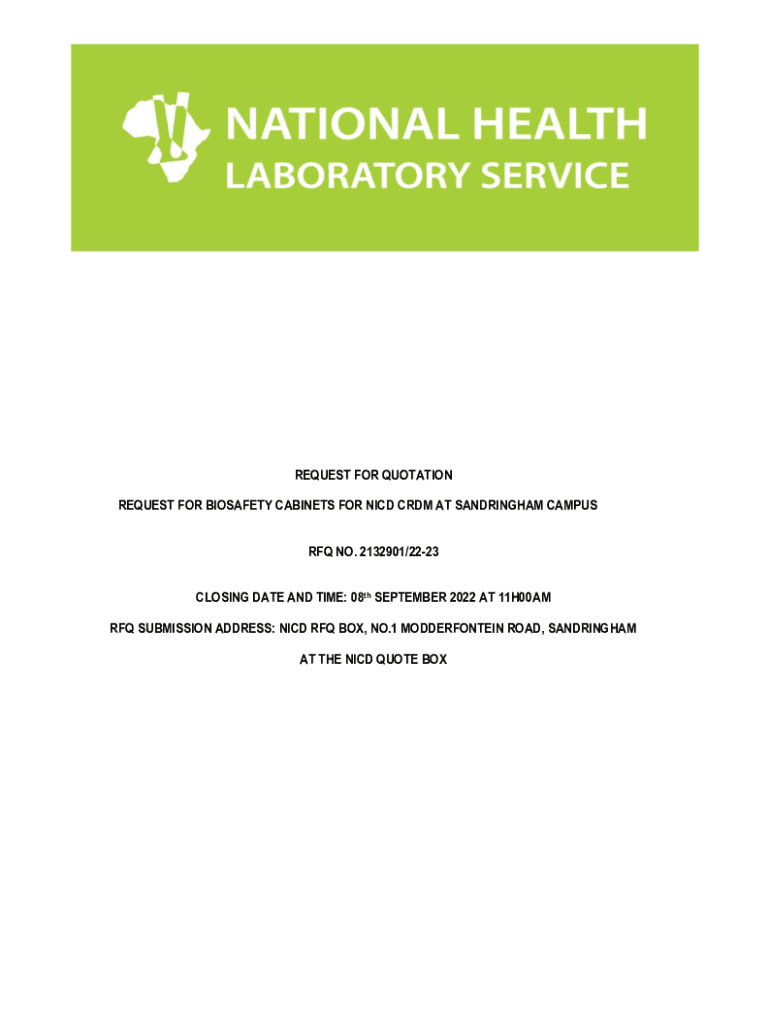 REQUEST FOR BIOSAFETY CABINETS FOR NICE CRAM AT SANDRINGHAM CAMPUS