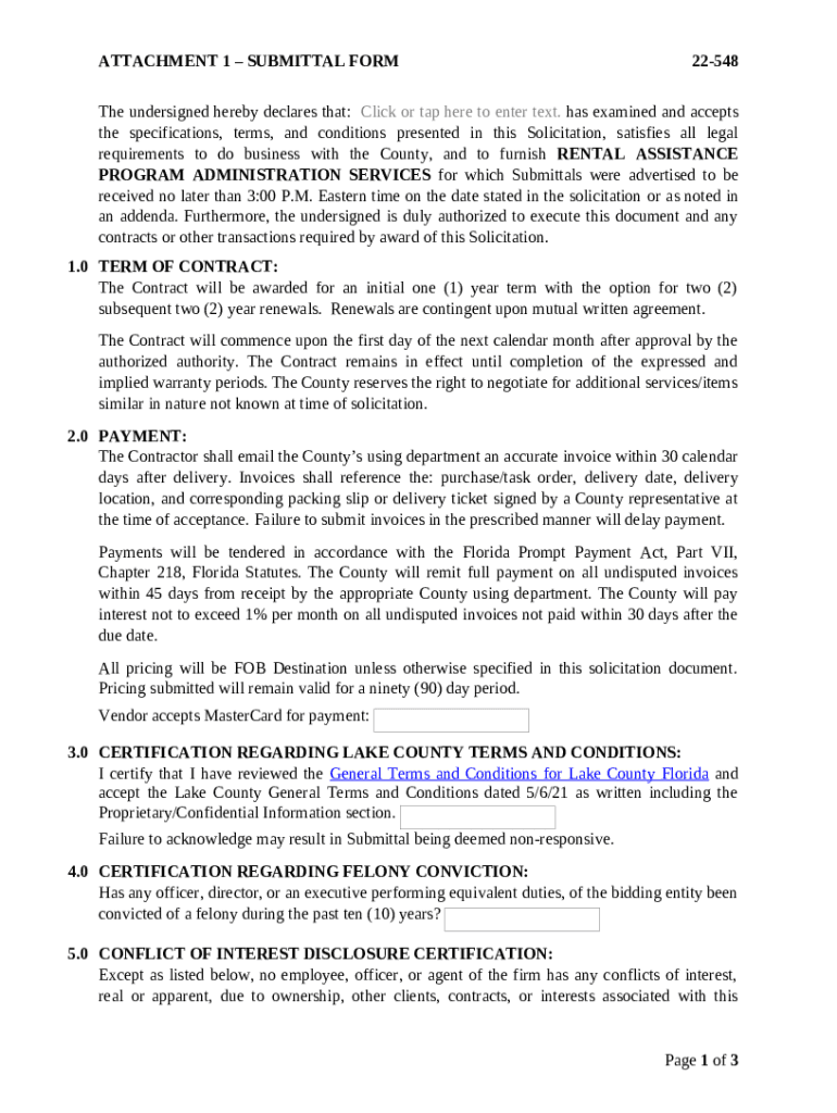 How to fill out Attachment 1 - Submittal 22-548