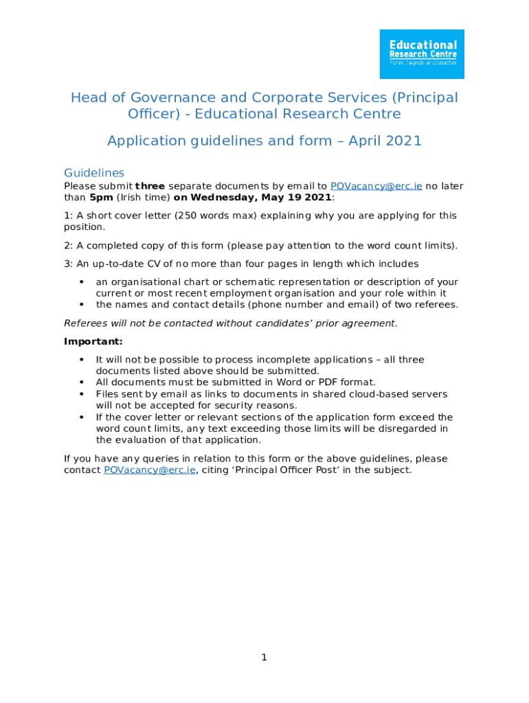 What is Head of Governance and Corporate Services (Principal ... Form?