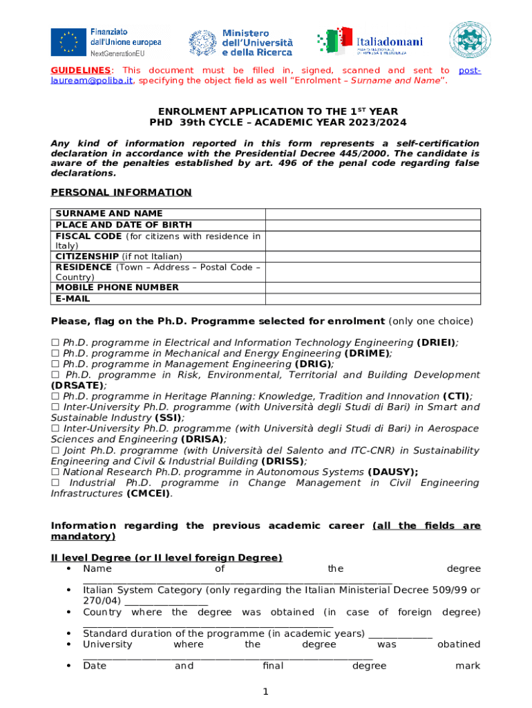 The GUIDELINES: This document must be filled in, signed, scanned and sent to post-laureampoliba is a fillable form in MS Word extension that should be submitted to the required address in order to provide certain info. It needs to be filled-out and signed, which can be done in hard copy, or using a particular software e. g. PDFfiller. This tool lets you fill out any PDF or Word document right in the web, customize it according to your needs and put a legally-binding electronic signature. Right away after completion, you can send the GUIDELINES: This document must be filled in, signed, scanned and sent to post-laureampoliba to the appropriate recipient, or multiple ones via email or fax. The editable template is printable as well thanks to PDFfiller feature and options proposed for printing out adjustment. Both in electronic and in hard copy, your form will have a clean and professional appearance. You can also save it as the template to use later, so you don't need to create a new document from the beginning. All you need to do is to amend the ready template.
