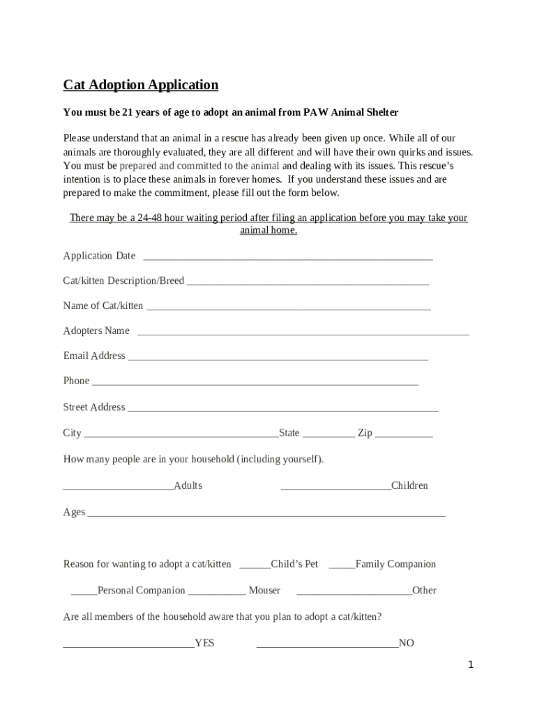 Frequently asked questions about the form Apply for Cat AdoptionAnimal Welfare ...