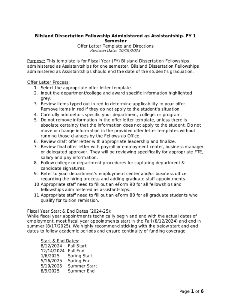 How to fill out Bilsland Fellowship Administered as Assistantship - FY