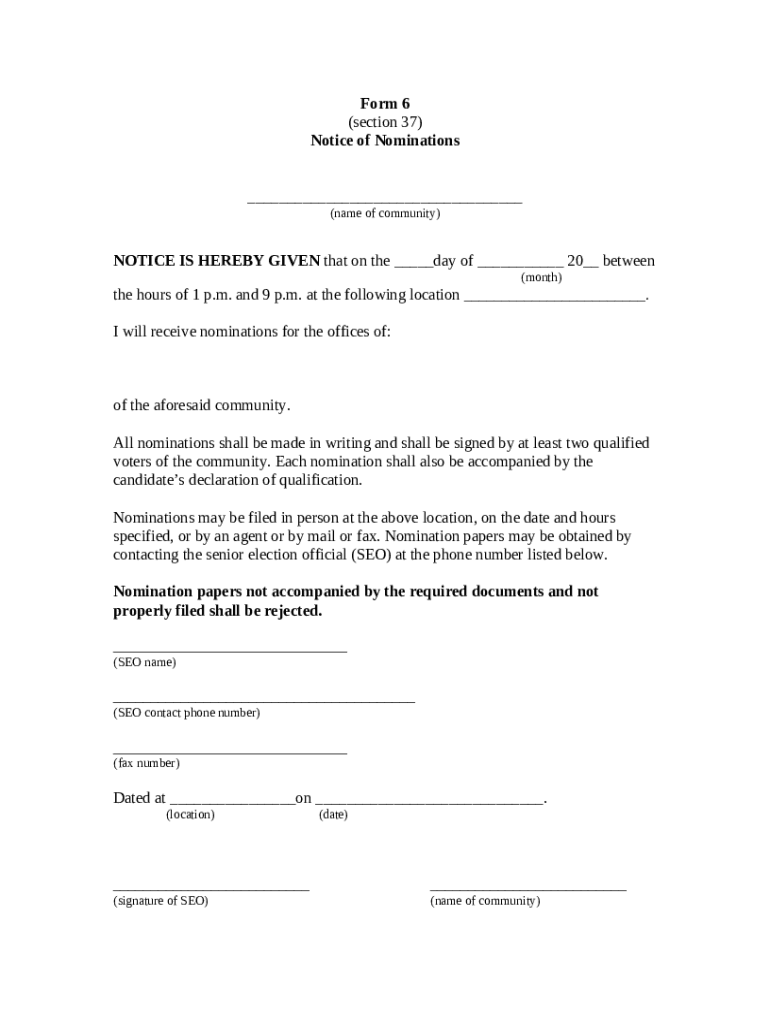 How to fill NOTICE OF NOMINATIONS POSTER word template