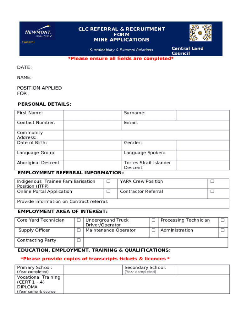 Newmont REFERRAL and recruitment : d17 -119970 template instructions
