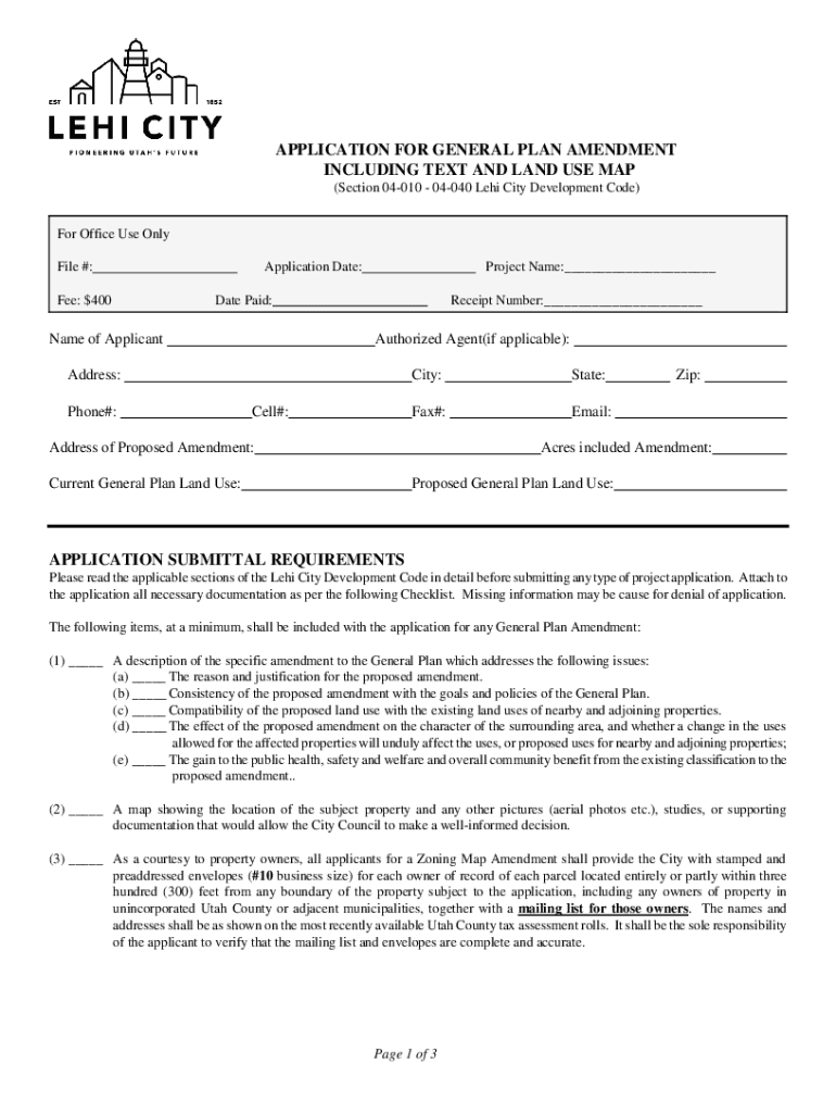 Get the free application for general plan amendment including text and ...