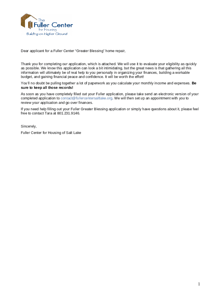 Template Application for Housing - Fuller CenterSalt Lake instructions