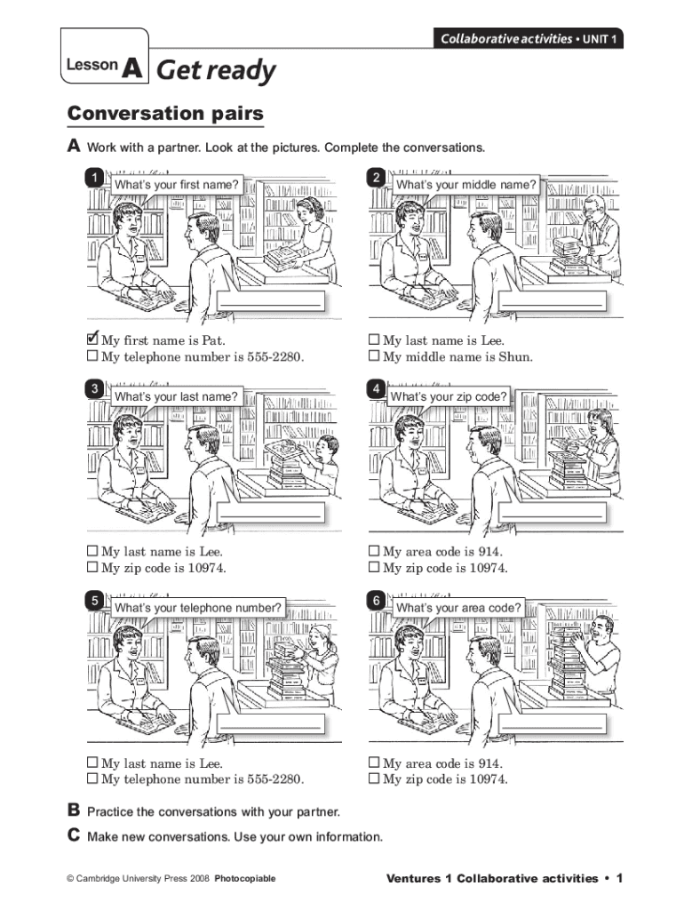 Collaborative activities UNIT 1LessonA Get readyConversation pairs
