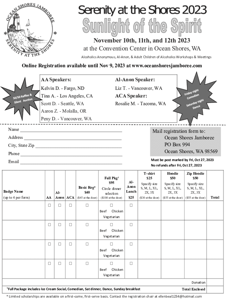 November 10th, 11th, and 12th 2023 at the Convention Center in Ocean Shores, WA Alcoholics Anonymous, AlAnon, & Adult Children of Alcoholics Workshops & MeetingsOnline Registration available until