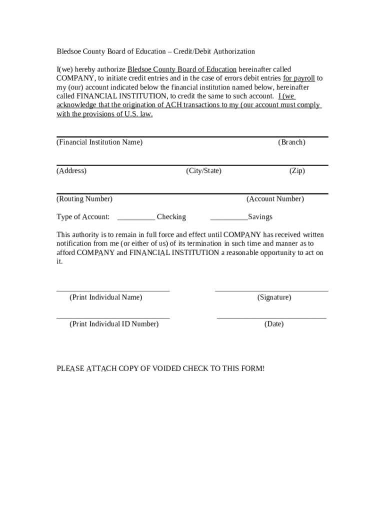 Template Bledsoe County Board of EducationCredit/Debit Authorization instructions