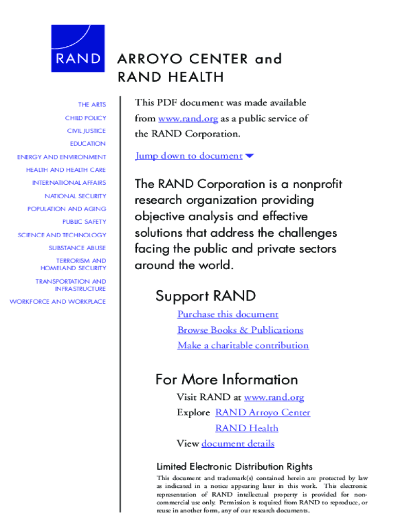 THE Artists PDF document was made availableCHILD POLICY from www.rand.org as a public service civil JUSTICE the RAND Corporation. EDUCATION ENERGY AND ENVIRONMENTJump down to document6HEALTH AND HEALTH