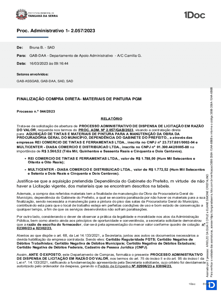 Pro. Administrative 1 2.057/2023De:Brunei B. Sápara: GAB DAA Department de Apoio Administrative A/C Camilla G.