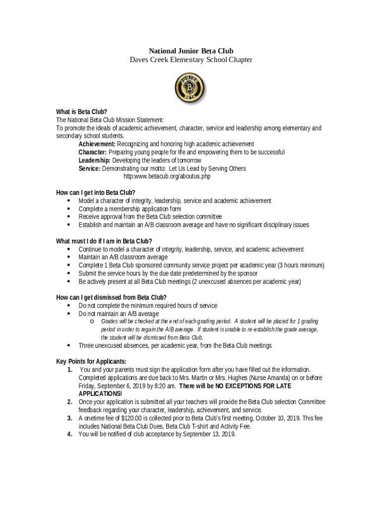 Instructions for the form BETA Club / THE NATIONAL BETA CLUB PURPOSE