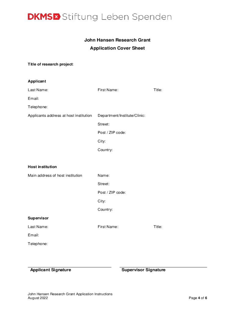 How to fill out john hansen research grant