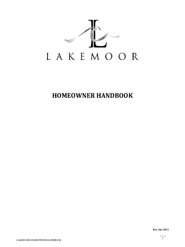 HOMEOWNER HANDBOOKRev. Apr 2022LAKEMOOR HOMEOWNER HANDBOOK1FOREWORD This Handbook is included as one of several governing documents for the Lakemoor Homeowners Association (HOA). It has been created