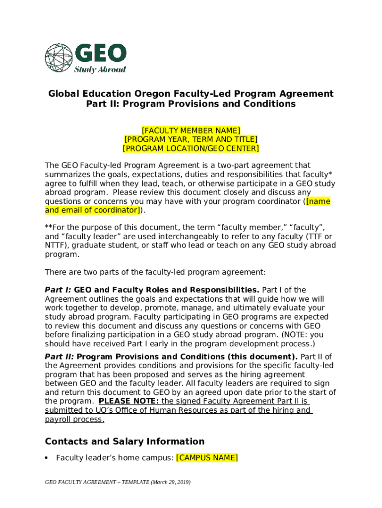 Instructions for the Faculty Provisions, Conditions and Final Agreement - geo uoregon form