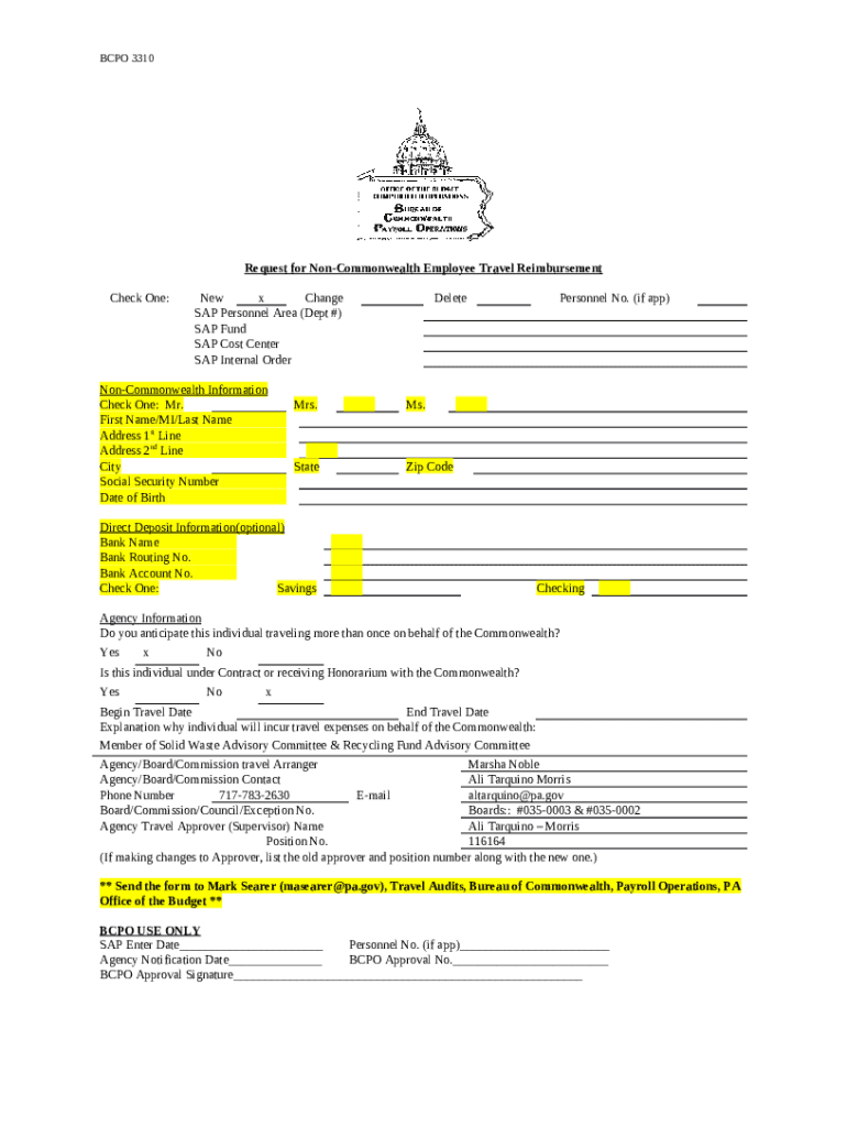 How to fill No Authorization personnel number XXXXX(Travel Request) - files dep state pa word template