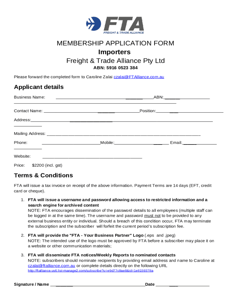 How should you fill out the FTA News - Join the Alliance - benefits and application s template