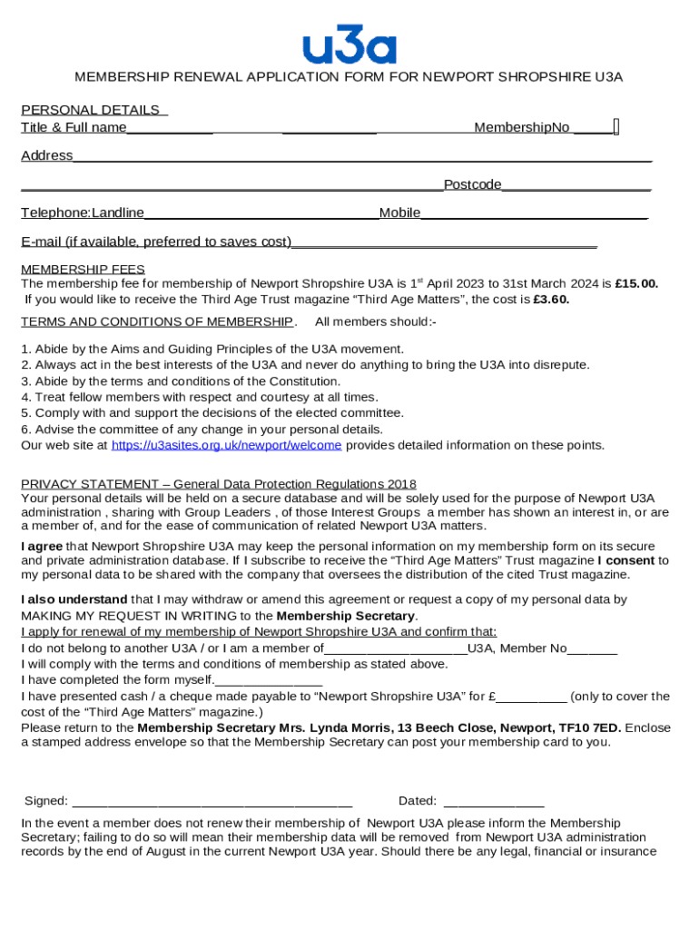 The Newport / Casnewydd South-East Wales u3a: GROUPS is a Word document required to be submitted to the required address to provide specific information. It has to be filled-out and signed, which is possible in hard copy, or using a particular solution such as PDFfiller. It allows to fill out any PDF or Word document directly in your browser, customize it depending on your requirements and put a legally-binding electronic signature. Once after completion, user can easily send the Newport / Casnewydd South-East Wales u3a: GROUPS to the appropriate receiver, or multiple recipients via email or fax. The editable template is printable too because of PDFfiller feature and options presented for printing out adjustment. In both digital and in hard copy, your form will have a clean and professional appearance. It's also possible to save it as the template for further use, there's no need to create a new document from the beginning. All that needed is to customize the ready sample.