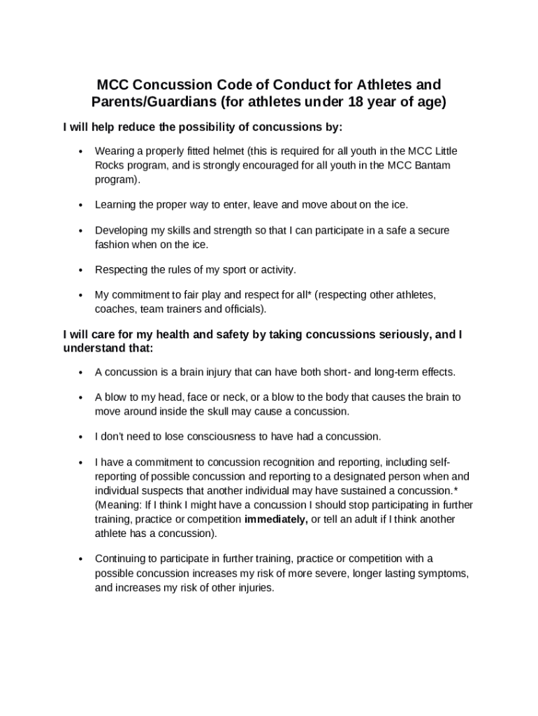 What is Sample Concussion Code of Conduct for Athletes & ... Form?