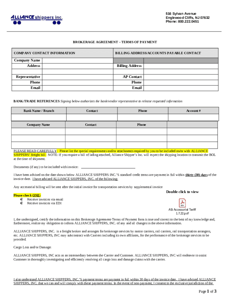 BROKERAGE AGREEMENT - TERMS OF PAYMENT template instructions