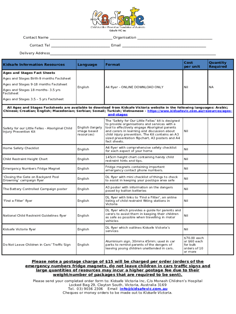 What is Ages and Stages Fact Sheets - Translated - Kidsafe VIC Form?